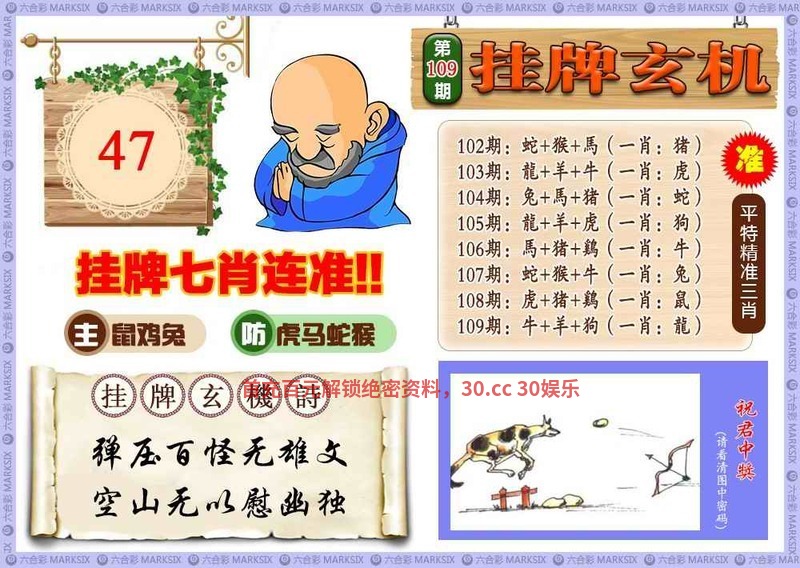 102期九肖 | 龙鼠鸡羊牛虎马蛇猴 | 鼠30中 |